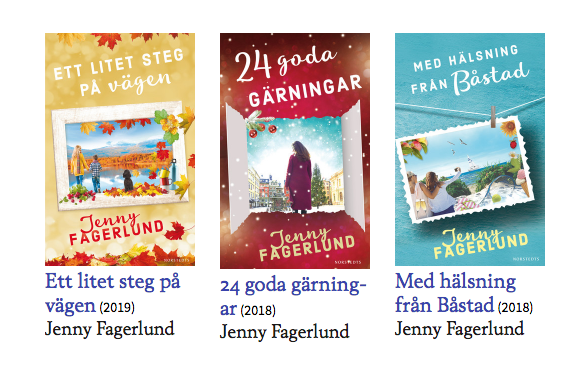 Jag heter Jenny Fagerlund och skriver böcker inom genren feelgood. Jag har bland annat skrivit Med hälsning från Båstad och 24 goda gärningar samt Ett litet steg på vägen. Mina böcker är sålda till flera länder.